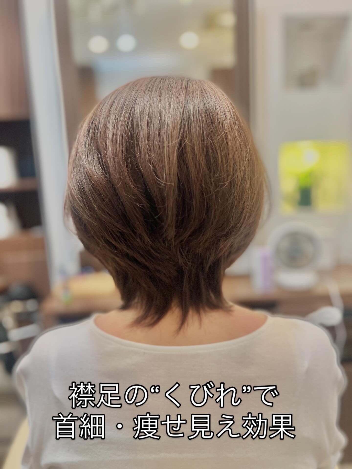 首筋に沿う襟足を作ることで、首を細く長く、スリムな印象に。