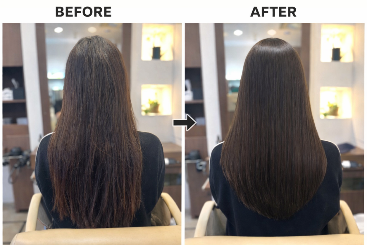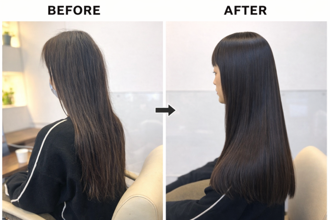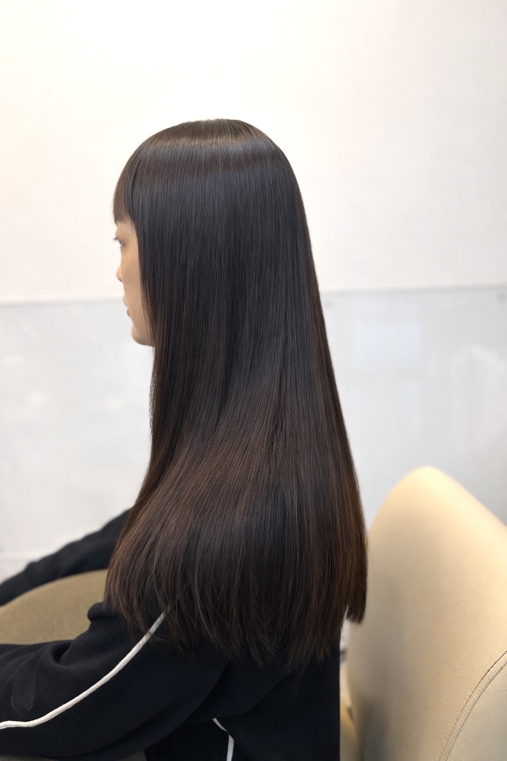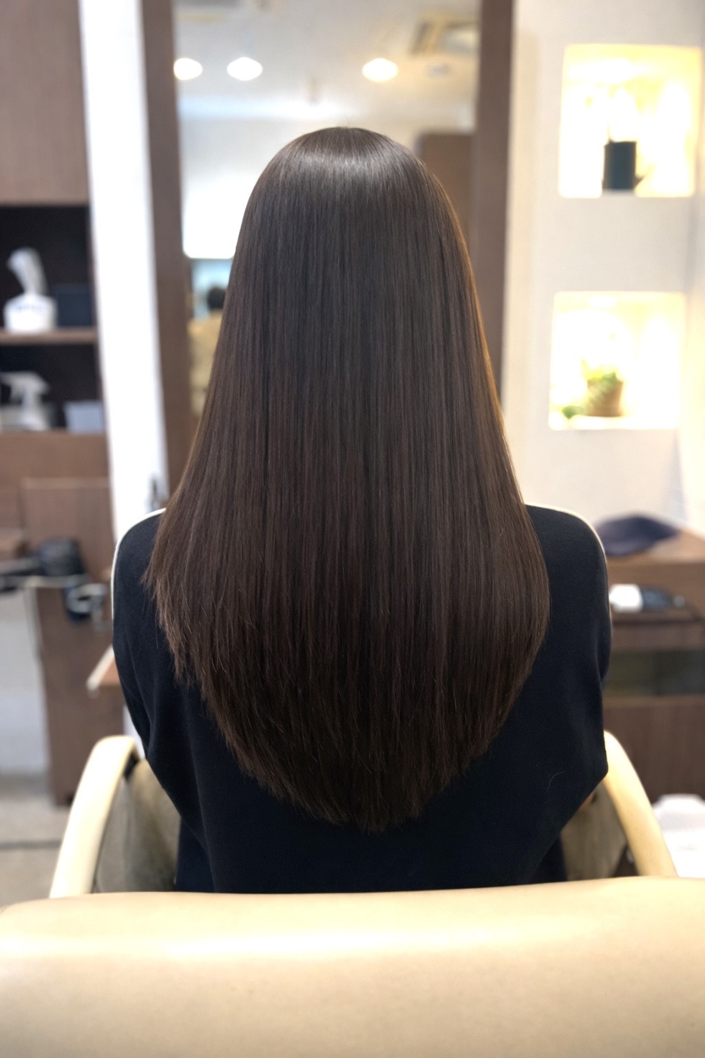 硬くならず、自然な動きと毛先まで続くツヤのある仕上がりに。
