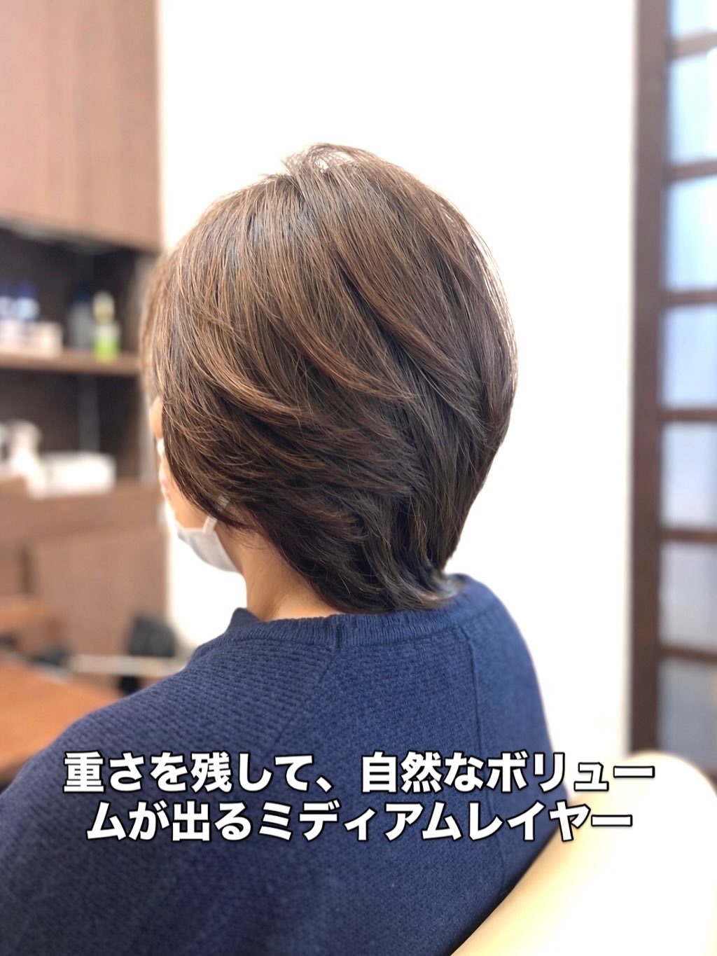 乾かすだけでもトップのボリュームと立体感のあるミディアムに。